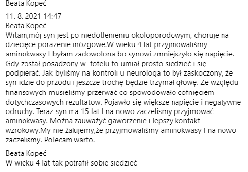 The use of amino acids in the treatment of epilepsy offers a promising alternative, particularly for those who do not respond to conventional medications. The potential to reduce or even eliminate seizures, combined with improvements in speech, cognitive, and motor development, makes amino acids a valuable tool in managing epilepsy. Treatment with amino-acid preparations is also effective for children in whom epilepsy is accompanied by disorders of psychomotor development. Amino-acids directly stimulate intellectual development, speech development, significantly improve gross and fine motor skills, as well as balance and co-ordination of movements. Improvement of speech development, cognitive functions and motor development takes place also in children with resistant forms of epilepsy, in which the patient does not respond or responds only minimally to treatment with anti-epileptic drugs.